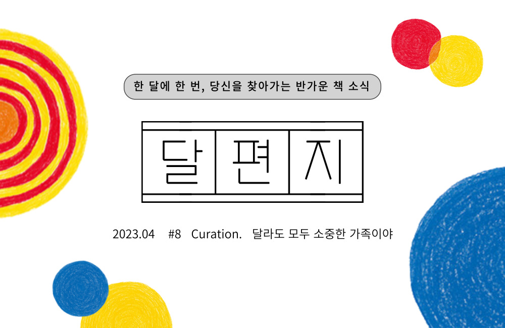 여덟 번째 '달편지'에서는 내 옆의 가족을 잘 보듬으며 살아가는 평범한 사람들에게 위로를 전하는 그림책을 보여 드리려 합니다. 사랑을 담아 언제라도 안고, 안길 수 있는 가족이 생각나는 책들입니다.