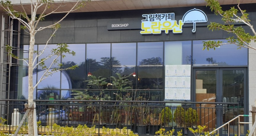 오늘의 책방은 신기하게도 제주 관광대학교 안에 위치해 있는 '그림책카페 노란우산' 관광대점입니다. 그림책 전문 서점이자 로스터리 카페이죠.