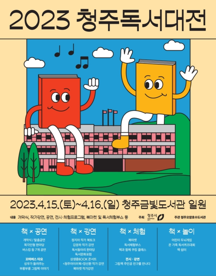 ‘우리 서로(書路) 만나볼까?’라는 주제로 펼쳐질 2023 청주독서대전이 오는 4월 15일, 16일 이틀간 금천동 금빛도서관 일원에서 열립니다.